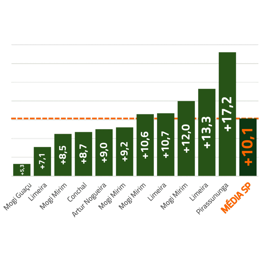 Incremento de Produtividade com SiliHumic na cultura da soja (sc/ha) - 11 Áreas de Produtores Rurais (SP)
